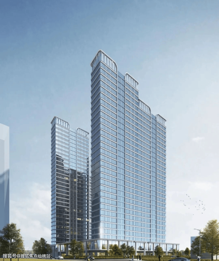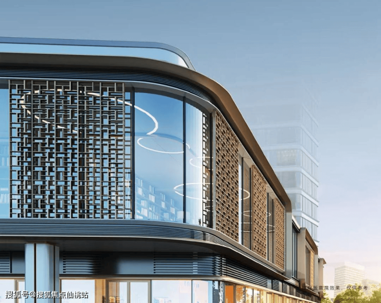 项目外立面采用大面积中空LOW-E玻璃幕墙,辅以金属铝板勾勒,环幕弧面公建化立面,打造屹立中心的封面。