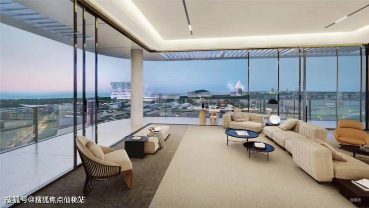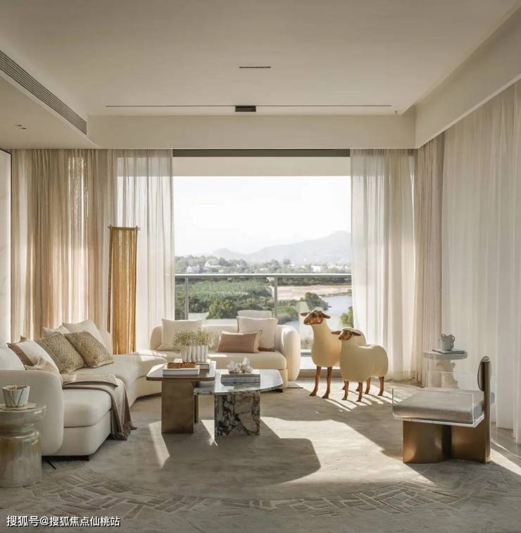 2.4米以上进深的转角阳台结合270°转角无柱落地推拉门。实现建筑内外空间边界模糊与消失,强调空间的流动感;