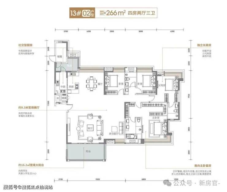 🔸02户型:266㎡ 四房三卫双套间