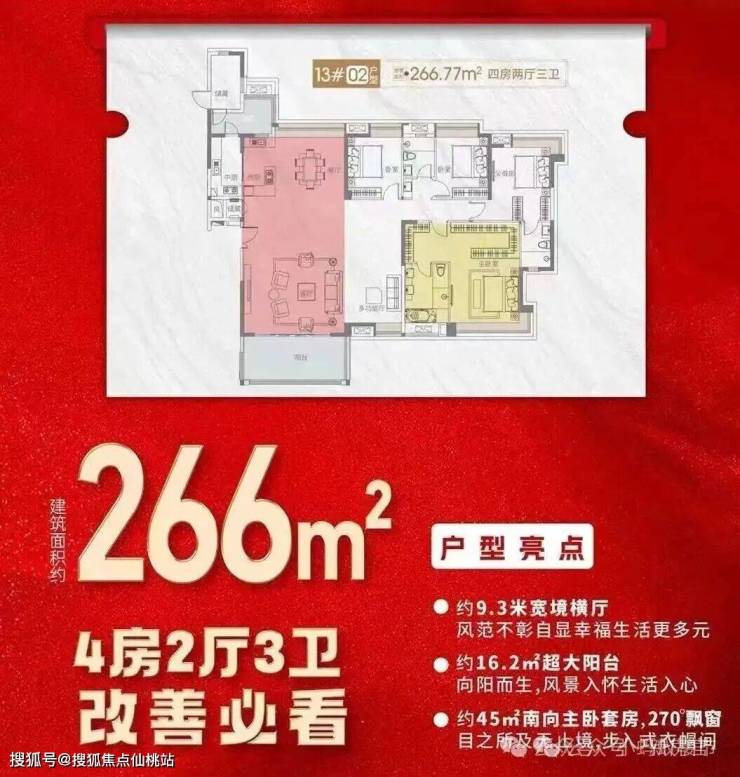 182㎡四房双套间:五开间朝南,主卧270°转角飘窗,南北双阳台,短进深设计让阳光无死角渗透。