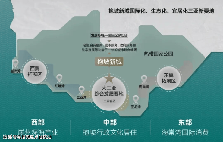 三亚市城区作为向东联动海棠湾、向西联动崖州湾发展的关键枢纽,抱坡新城作为三亚城区的发展要地,政府约600亿投资以顶层规划蓝图为基底,产城融合发展,代言三亚与世界对话,令国际瞩目。