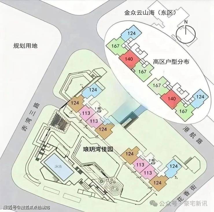 建筑规划包括2栋塔楼,其中高区采用4梯4户的设计,低区则为5梯5户,确保了每户都能享有独立电梯厅的配置。