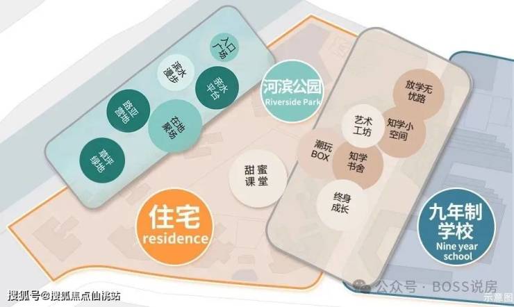 项目074-1 地块配建 36 班九年制学校,074-2 地块配建 9 班幼儿园,周边还有广州博萃德学校,涵盖了从幼儿教育到九年义务教育以及国际教育等不同类型的教育资源。