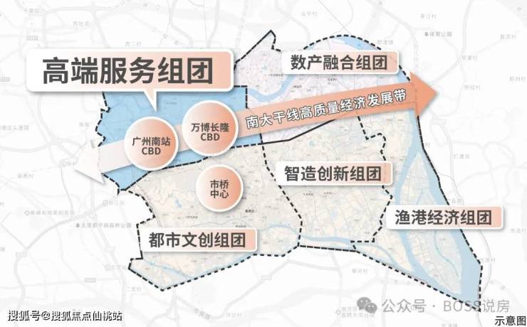 广州南站串联万博、长隆两大板块,以“超级枢纽+超级商圈”模式平移都市中心,南站8km范围聚集番禺70%的经济总量、70%的常住人口,拥有前沿的产业体系+集中的商业配套+宜居的生态资源+高效的通勤速度,是番禺最适合生活居住的组团,打造广州不可复制的“黄金动脉”。