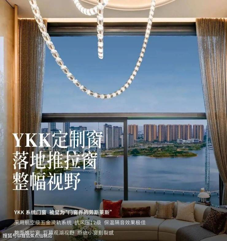且门窗选用行业 “劳斯莱斯”—— 世界顶级品牌 YKK,国标最高 8 级气密性、航空级滑轨抗 12 级风压,隔音隔温效果绝佳,整幅推拉无视野割裂,把湖景、园景完整 “框” 进家中。
