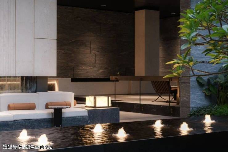 这里没有程式化的绿化点缀,而是以完整的“山、林、水、谷、岛”地貌逻辑,打造出一座可游可赏的自然公园。树木舒展,花草层次丰盈,行走其间,如同漫步于一片被精心打理的野趣森林。更打动人的是无数重合度极低的细节:入口处叠水与酒店式落客区虚实相映,将喧嚣温柔滤净,安缦式的隐奢与宁静,从归家第一刻便已奠定。
