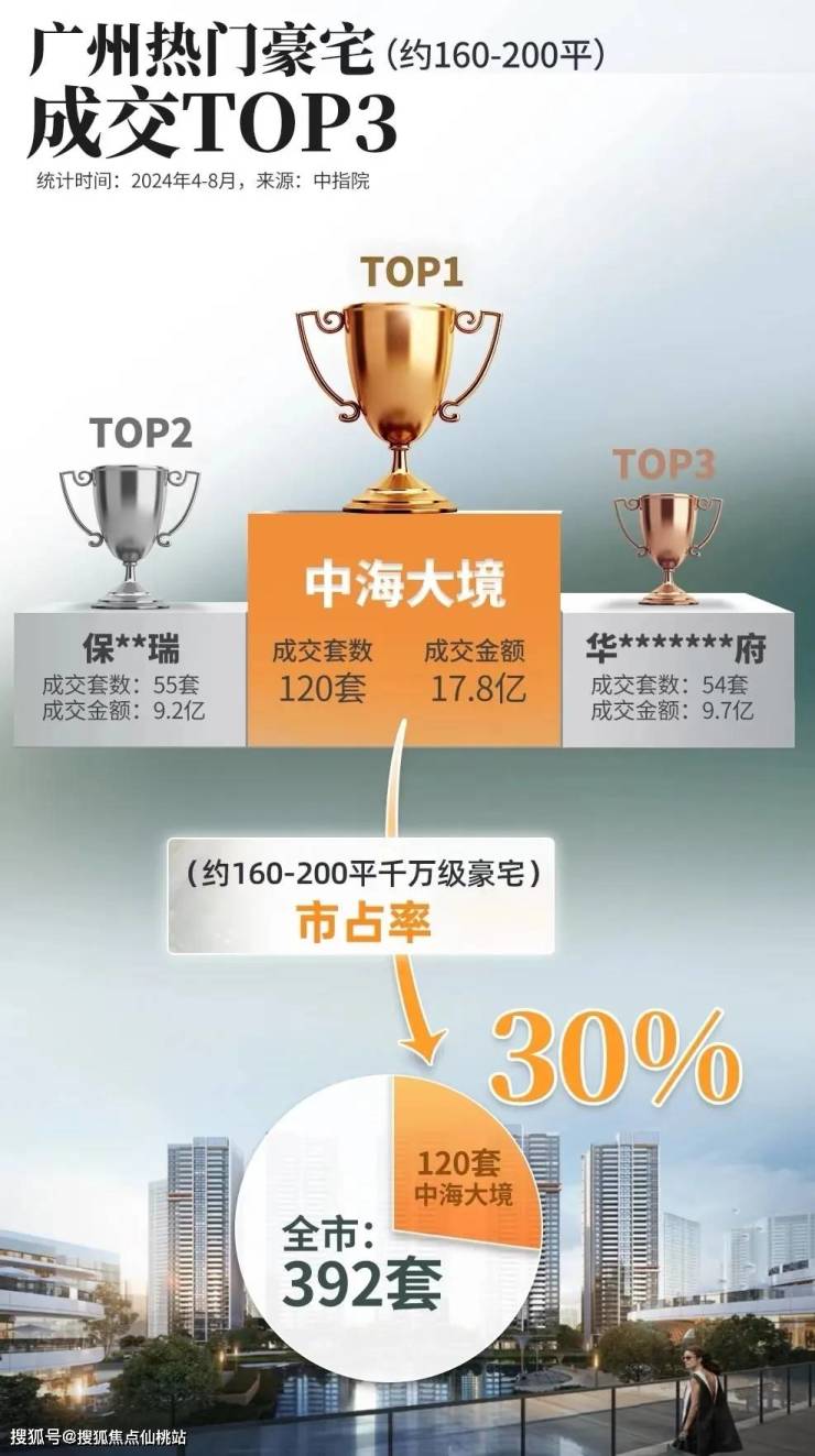2024年4月以来,项目主打约160-200平户型,狂成交金额、销量和面积均是NO.1,斩获广州豪宅“三冠王”。
