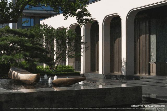 天樾云颂二期的建筑外立面,结合香槟色铝板与大面玻璃,构筑成“全面屏幕墙”。约8.3米高的入户大堂,将归家体验的奢华与尊崇感拉满。