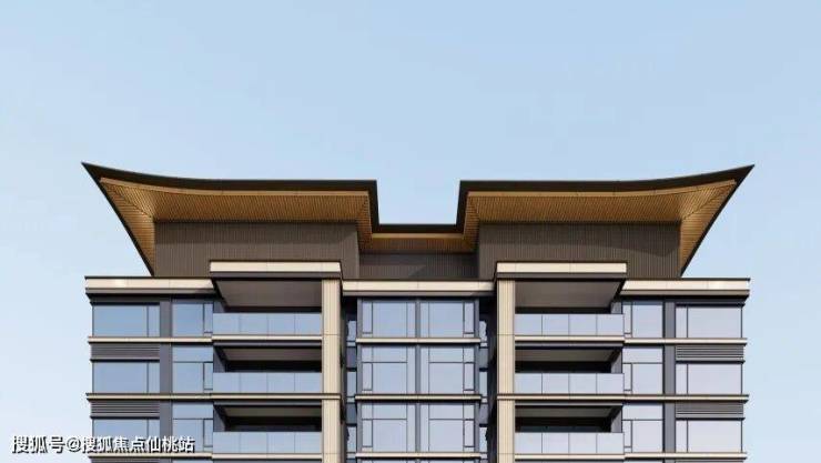 建筑外形上提取宋韵建筑的精巧典雅,以传统装饰纹样“凤鸟纹”和良渚文化“玉琮”为设计灵感,将凤鸟冠顶与玉琮身段巧妙地融入建筑设计中,演绎为漂浮感的顶部造型和简洁舒展的立面肌理,结合超大窗墙比,使得整个项目呈现出一种东方人文大宅的气质。