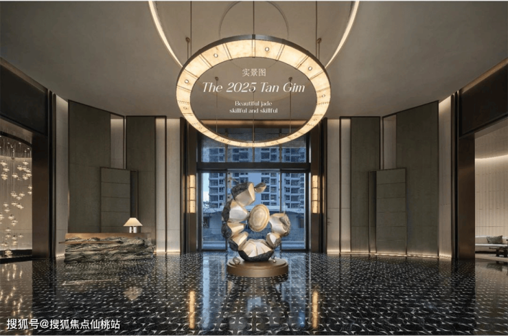 皇家白玉的仪式感:归家环岛前庭中央,整石切割的皇家白玉发光圆盘,形似平安扣,寓意“财运亨通”;7米高黄铜大门左右矗立四幅皇家白玉玉璧,晨光漫溢时,温润玉泽如神鹿衔星坠入凡尘。