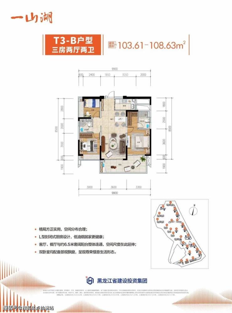 面积:104-118㎡三房两厅两卫