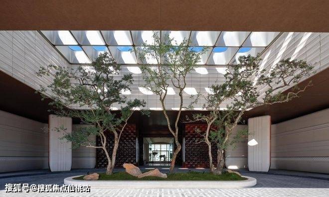 就连入户大堂,也创新采用全通透玻璃界面取代实体墙面,挑高的空间、开放式布局,让绿意、阳光与建筑相融合。