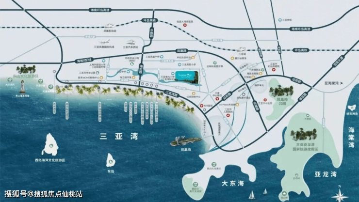 三亚湾,三亚四大核心湾区之一,东起鹿回头,西至天涯海角。海岸线绵延约22公里,拥有亚洲第一椰梦长廊,是三亚开发早、城市资源配套全、商业密度高的度假湾区及老牌富人聚集地,也是全市罕有“国”字号美丽海湾,打造三亚“海上会客厅”。(内容来源:《三亚发布》官微)