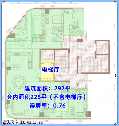 润和滨江湾什么都好,唯一的槽点就是得房率,一直被拿来说事,因为是商业性质赠送少。一期297户型博主实测了一下,得房率才76%,当然也有人说,豪宅不在乎得房率,在乎情绪价值。