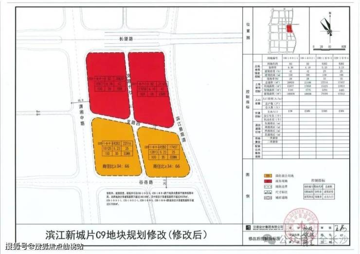 将C09-1-B-9-3、C09-1-B-9-4两地块用地性质修改为商住混合用地(R2B2),容积率≤5.23,商住比≥34:66,建筑密度≤25%,绿地率≥35%;