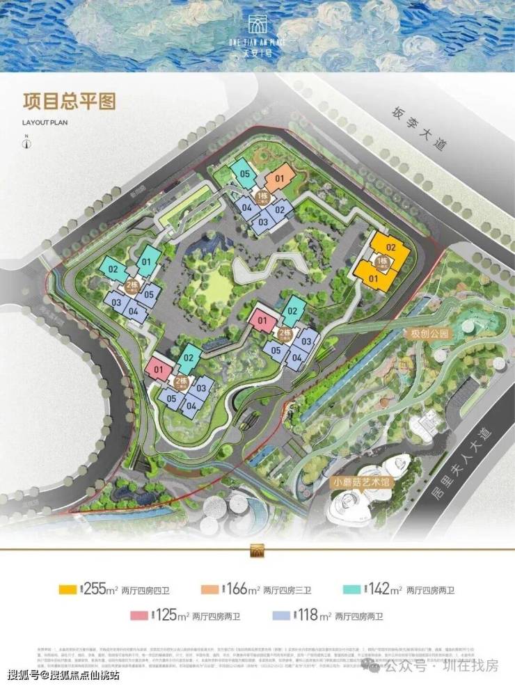 另140㎡的4房2卫,166㎡的4房2厅3卫,255㎡的4房2厅4卫户型,共301套房源,其中255平的户型整个小区仅有76套,非常稀缺,也是整个坂田唯一有这么大面积户型在售的新盘。
