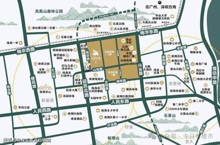 香山学校就在五洲花城二期对面,虽然不是能稳居珠海第一档的小学,但也是前列了。即将开建的文园小学位于五洲花城三期对面。