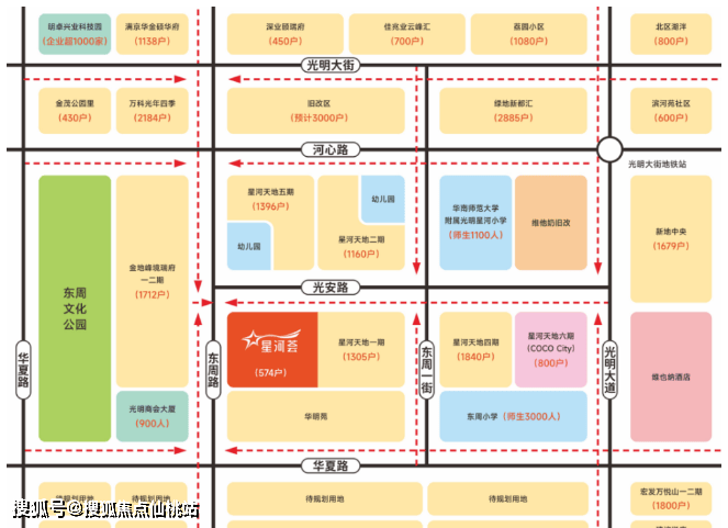 星河天地分为6期开发,建面80万方,共计7000户,总计约30000人,800米内金地峰境瑞府、新地中央、绿地新都汇、金茂公园里、万科光年四季、佳兆业云峰汇、深业颐瑞府、宏发万悦山、学校、园区等消费客群超5万人。