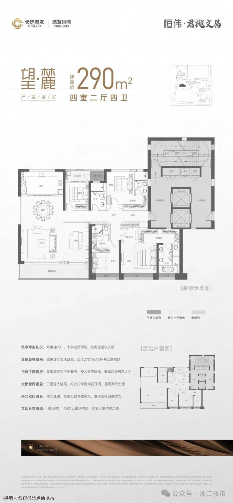 户型设计更是让人眼前一亮。建面约195 - 290㎡的江景大平层,两梯两户的配置保证了居住的私密性。约3.15 - 3.3米的奢阔层高,部分户型还拥有270°通风采光,将岳麓山、橘子洲的盛景尽收眼底。