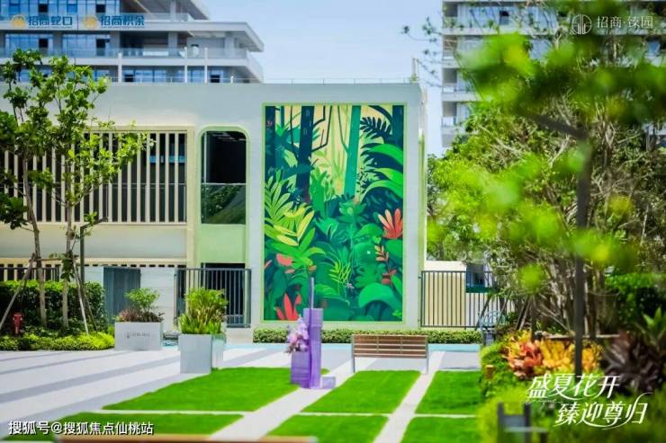 走进三亚招商・臻园,一幅巨型绿植墙绘瞬间抓住眼球。墙绘以自然生态为主题,鲜艳花卉与绿植相互映衬,仿佛将一片生机盎然的花园“搬”到了社区墙上。