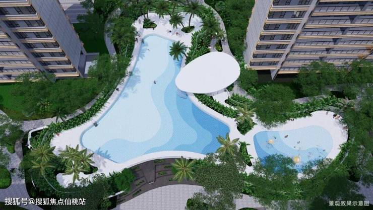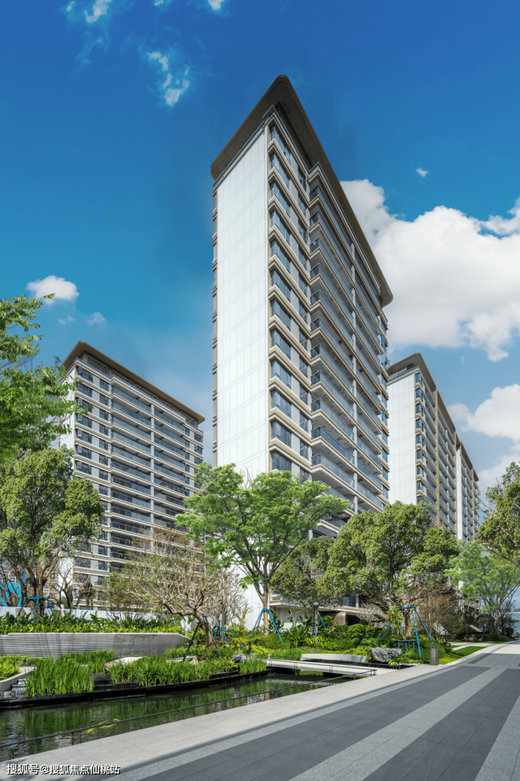 臻质生活艺境:与通海公园对望,打造多重美好生活场景,包括户外悠享泳池、架空层功能活动空间、轻奢疗愈度假园林和精装奢阔室内空间。