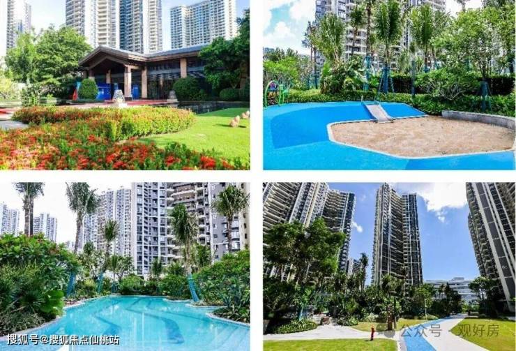 小区结合海南地域特色,建筑围合成中心花园,设计了泳池、儿童游戏及休闲主题式“泛会所”,并种植海南本地的乔灌木,配置四季常开的花卉植物的核心绿地作为主景观节点,为居民提供公共活动聚集、休闲、健身娱乐的休闲场所。