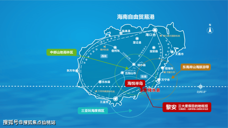 海悦半岛位于北纬18°以南,处于三亚滨海度假区与中部山地雨林区、东南海岸山海旅游度假区交汇区域,进可热带山海,退可一城繁华。于此,开启伴城伴山伴海的美好假期。