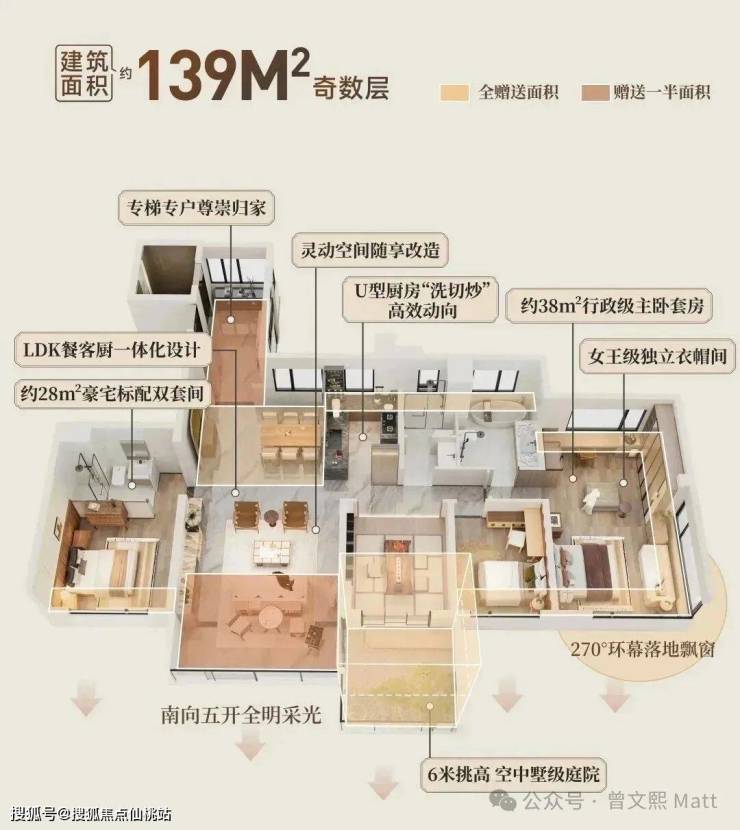 把目光聚焦建面约139平,这是保利产品中的精华之作。令人震撼的是,奇数层及偶数层,皆带有全屋五开间采光朝南、LDKB+X灵动空间+空中墅级庭院。