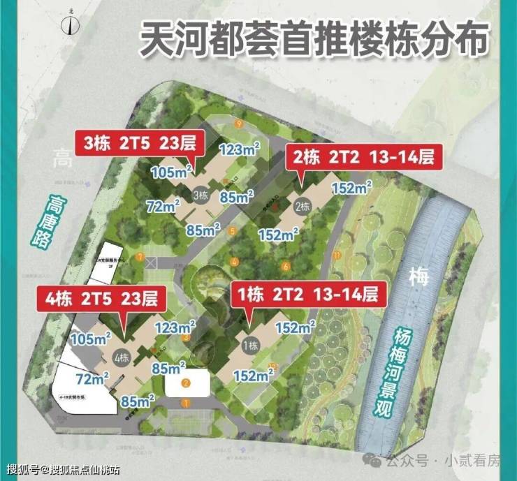 👉1栋、2栋:是13-14层的小高层,2T2,靠近杨梅河,更安静、更舒适;