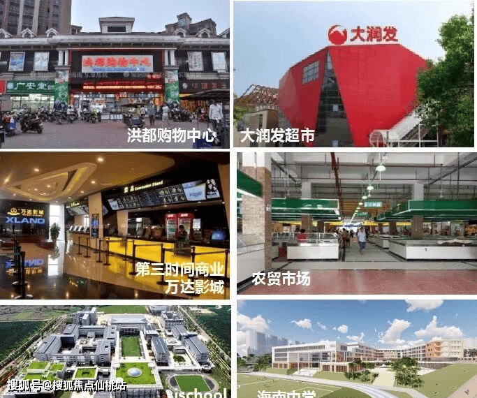 四大银行、第三时间商业街、大润发购物广场、万达影城等