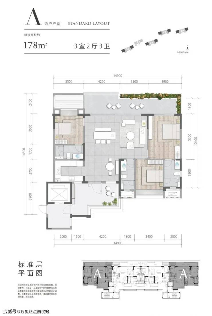 【东区二期大平层】4 栋 9-11 的观景大平层公寓及 1 栋会所,户型约为175平左右的三房三卫,成交价低楼层7、800万,高楼层1000万左右。