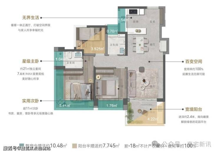 ②主卧约21㎡,7.6米IMAX景观线