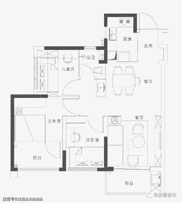 【高使用率户型——约75㎡ 三房一卫】约3.3m客厅开间,整合LDK空间,拓宽公共活动空间