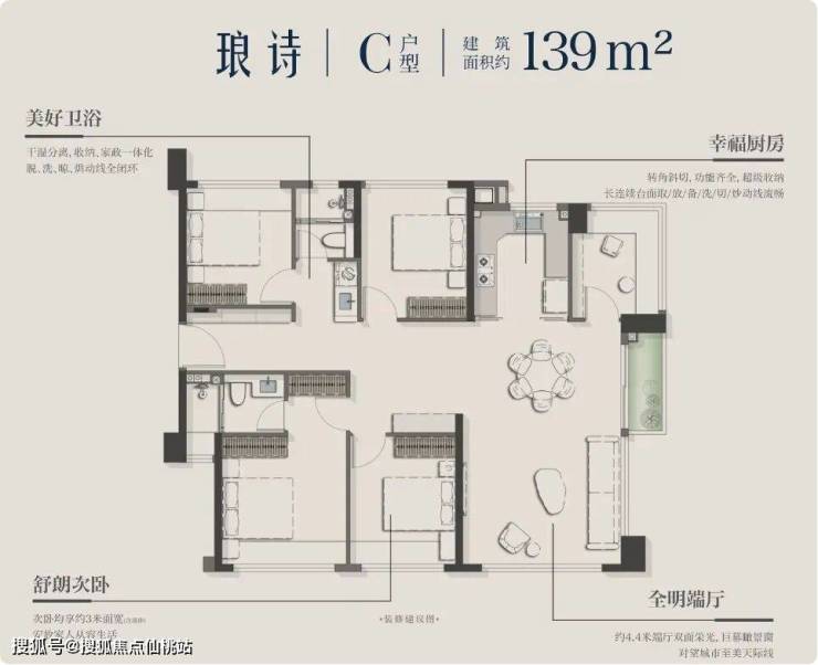 除此之外,11号楼的139㎡户型,是岛内罕见的带海景五房,拥有与天琴海约218m²户型(均价8.8万/㎡)同款的海景资源,性价比直接拉满;