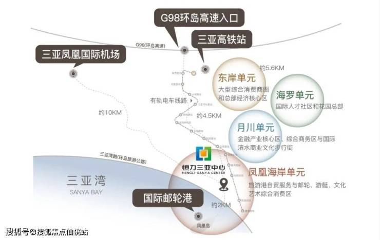 交通无界:距凤凰国际机场约12公里,109条航线通达全球;近邻三亚高铁站(约4.5公里)与G98环岛高速(约5.6公里),未来更有海底隧道、高速磁悬浮列车畅达全岛,有轨电车在家门口就能接驳;约2公里到凤凰岛国际邮轮港,380+国际航次带你驶向30+国家和地区。