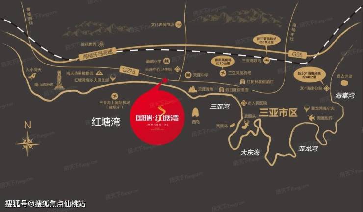 三亚国瑞红塘湾位于三亚市区红塘湾,东侧挨这天涯小镇,和天涯海角景区,项目距离海边仅300米左右。