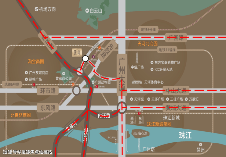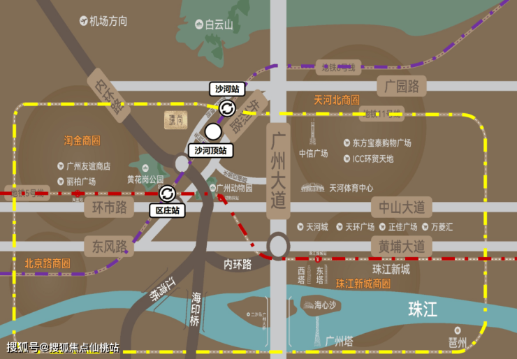 •三地铁交织(5/6/11号线),距离6号线沙河顶站B出口约500米,1站至沙河站换乘广州大环线11号线,2站至区庄站换乘东西大动脉5号线。3站淘金,6站北京路、珠江新城,一线直达琶洲。