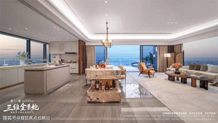 同时,更纤细、坚固的钢构件,为建筑立面的美学表达创造了更多可能。它使得大面积、大跨度的景观面得以实现,构建出引景入室的“三维全景舱”。这不仅是一处生活空间,更是一个悬浮于城市上空的环幕观景平台。