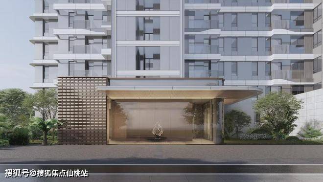 主入口处,汲取高端酒店灵感,采用中轴对称设计,通过水景、艺术景墙,尽展门第威仪。