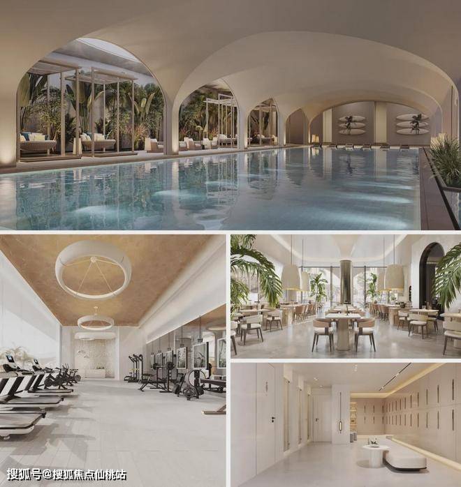 内部设置约320m²的成人恒温泳池和约116m²的儿童泳池,此外还有酒吧、健身区、瑜伽室、业主餐厅、棋牌室、私宴、书吧等。