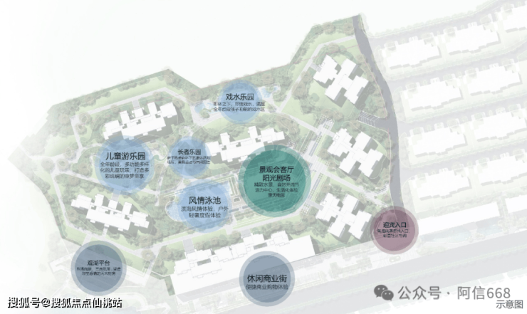 园林6大主题空间串联,包括景观会客厅、戏水乐园、长者乐园、风情泳池、儿童游乐园和观湖平台,兼顾功能性和观赏性,打造具有温馨感、品质感、艺术感的空间体验,为业主提供一个鲜活的园林生活空间。