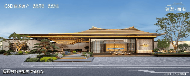 建发·阅海采用建发房产诗意东方风格打造,建筑塔冠上,中式挑檐的元素以一高一低的错落形式,既诠释“东方屋脊”的端重形象,又不失现代的轻盈灵动。香槟金金属线条、金属漆、深浅色质感涂料和多彩漆等多重复杂材料的运用,则写照东方美学的“流光溢彩”与湾海的大气多姿,焕新岛城人居建筑审美的至善追求。