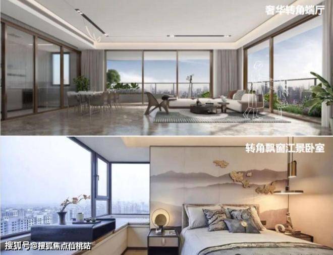 为了更大限度瞰江,飘窗采用270°转角设计,这在豪宅中才比较常见。