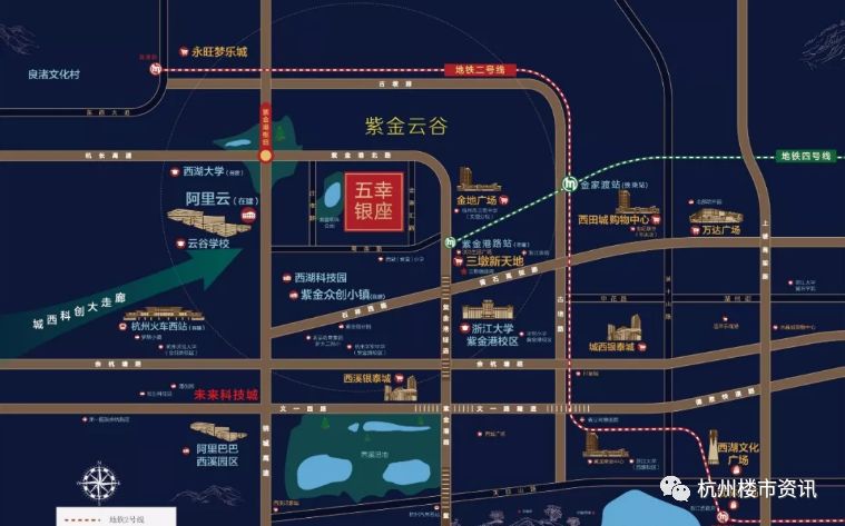 与“云谷”产业内核相得益彰的,是“紫金”所蕴含的人文内核。浙江大学(紫金港校区)是浙江较具影响力的高等学府,加上在建的西湖大学、云谷学校,五幸银座享受到浓浓书香气的同时,也成为他们较好的后盾。