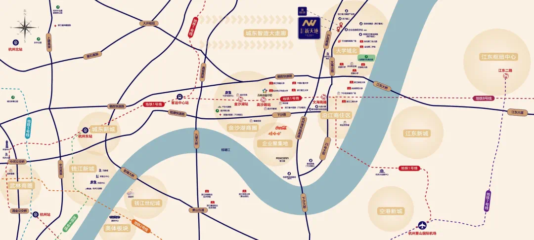 位于高新区核心区域,无缝对接钱塘新区,坐拥杭海新城与钱塘新区两大区域发展红利,占据杭州城东制造大走廊的重要大战命脉。