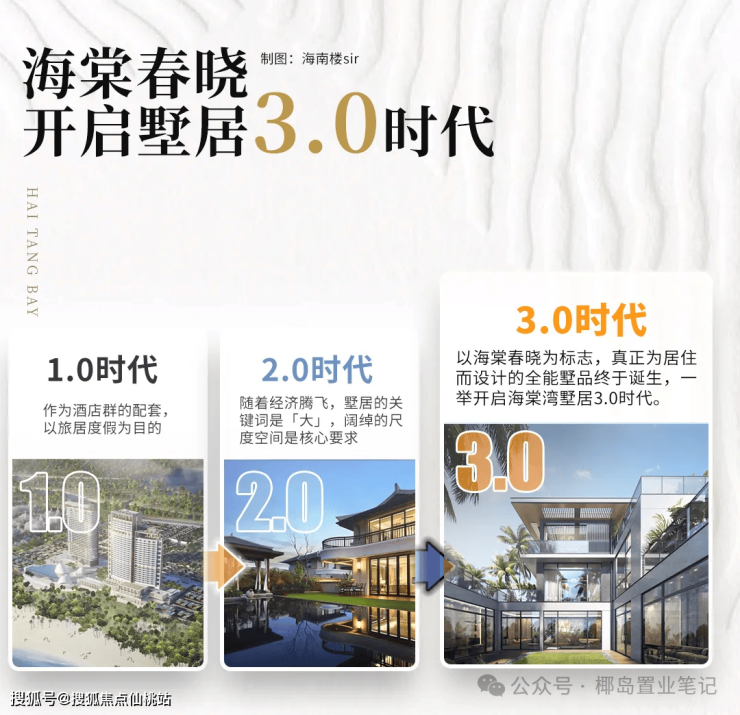 墅居3.0时代:以海棠春晓为标志,真正为居住而设计的全能墅品终于诞生,一举开启海棠湾墅居3.0时代。