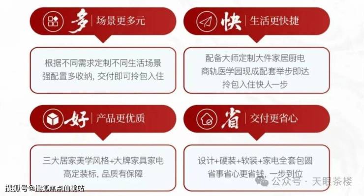 书香云锦这次推出中古风、现代简约、意式轻奢三种主流风格设计,带软装一起交付。包含大容量玄关柜,全屋中央空调,超5.1m台面厨房,岛内同款大尺寸地砖等,更有当下流行的网红款定制床、床头柜、沙发、茶几、餐桌、电视柜、衣柜、隐形纱窗都在内。同时精选品牌家居与电器——如摩恩卫浴、卡萨帝厨电、方太洗碗机等(具体品牌以交付清单为准),严选材质与工艺,打造兼具颜值与功能的品质住居。