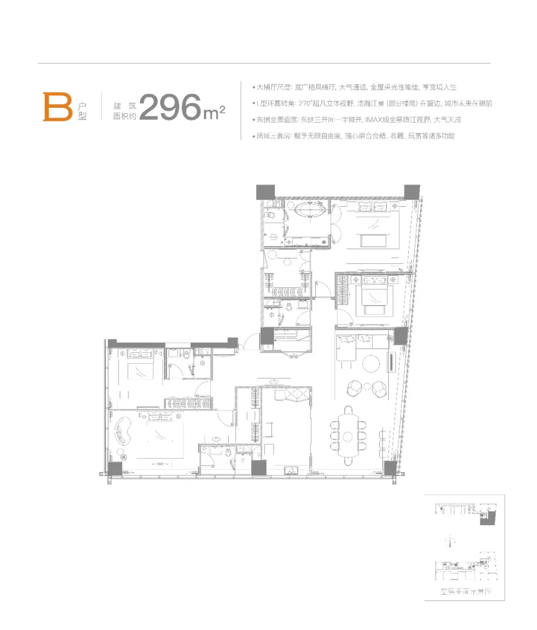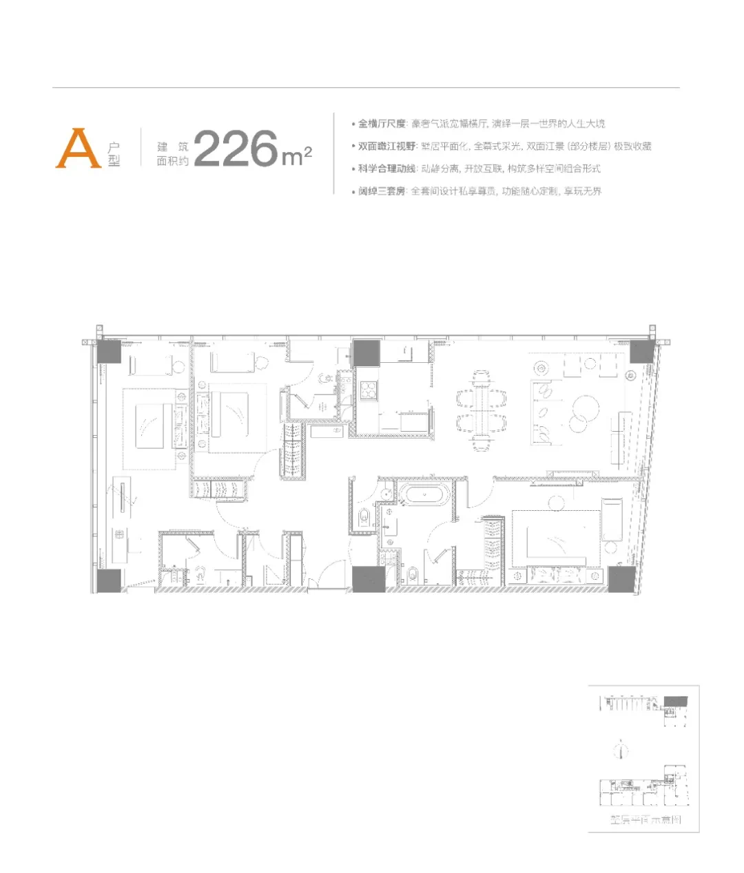 ·全景式面宽:环幕高层视野,直面钱江澎湃潮涌 ·大横厅尺度:IMAX级宽幅横厅,演绎一层一世界 ·奢阔落地窗:引入天然光感,充沛阳光无限流淌 ·多空间设计:合理动静分区,注入仪式感私密感!