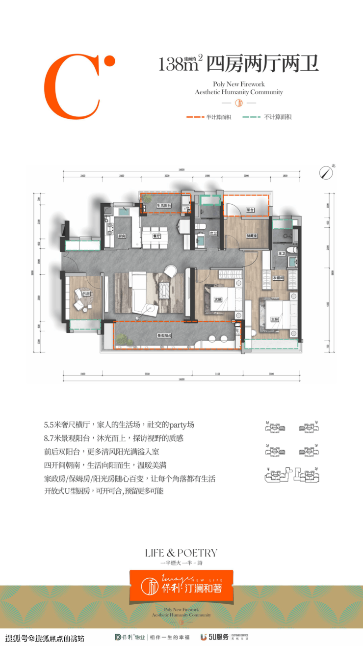项目提供建面约109㎡三房两厅两卫、120㎡和138㎡四房两厅两卫,三个面积段可以对位不同购房群体。
