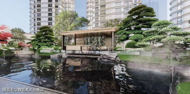 景观配置:95米宽、9.5米高仪式感大门,8.6米百年罗汉松阵列,11米全冠金丝楠木林,1200㎡锦鲤池,将中式礼制与自然景观完美融合。